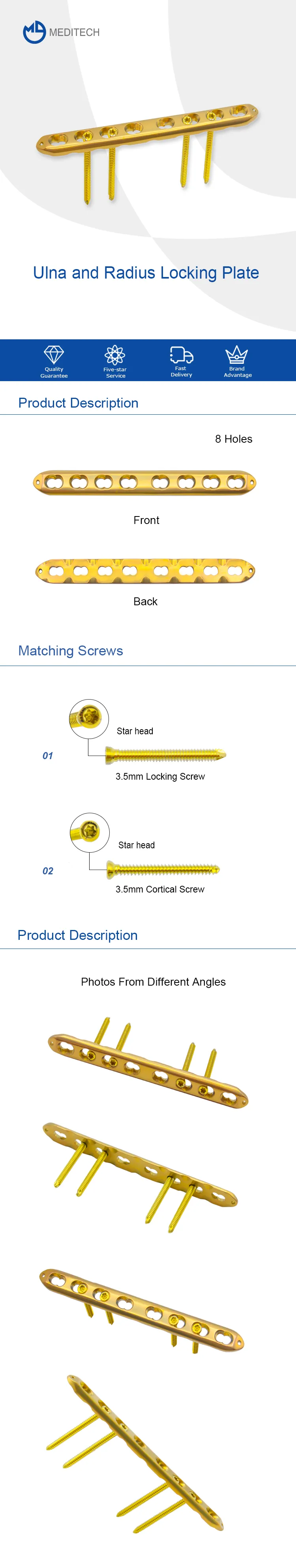 The ulna and radius locking plate can be used to treat a variety of forearm fractures, including distal radius fractures, ulna fractures, and both-bone forearm fractures. It is particularly useful for complex fractures that require superior stability and support.