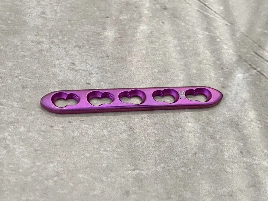 متوافقة حيوياً وغير قابلة للتآكل: اللوحة مصنوعة من التيتانيوم، وهو متوافق حيوياً وغير قابل للتآكل، مما يقلل من خطر حدوث مضاعفات ويضمن الاستقرار على المدى الطويل.