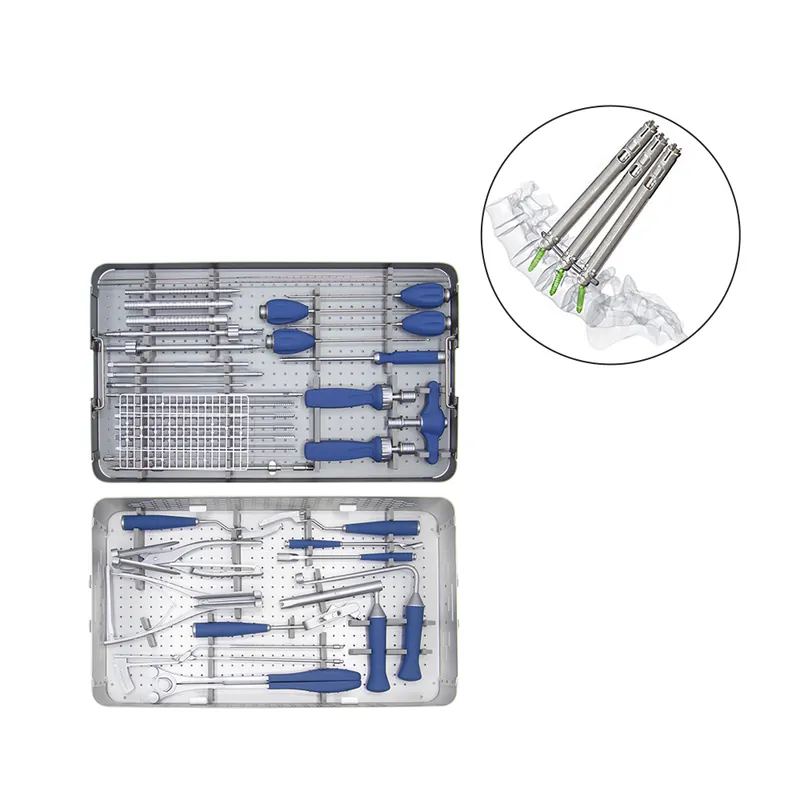 مجموعة الأدوات اللولبية ذات التدخل الجراحي البسيط عبارة عن مجموعة متخصصة من الأدوات الجراحية المصممة لإدخال براغي عنيقية في العمود الفقري باستخدام تقنيات طفيفة التوغل. تشتمل المجموعة عادةً على مجموعة متنوعة من الأدوات مثل القنيات والموسعات والأسلاك التوجيهية والصنابير والمسامير. تم تصميم هذه الأدوات للوصول إلى العمود الفقري من خلال شقوق صغيرة في الجلد، مما يقلل من الصدمات والمخاطر المرتبطة بالعمليات الجراحية المفتوحة.