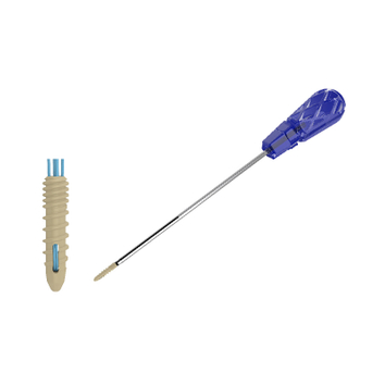 The sheath has a guide thread at the end for easy initial screwing and a hollow top for precise guide insertion.