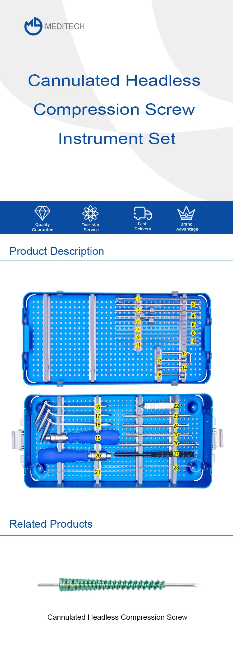 Alət dəstinə keçməzdən əvvəl, ilk növbədə başsız sıxılma vintlərinin nə olduğunu başa düşmək vacibdir. Bunlar düzgün sağalmanı təşviq etmək üçün iki sümük parçasını sıxışdırmaq üçün istifadə olunan vintlərdir. Bu vintlərin kanullu tərəfi bələdçi telin daxil edilməsinə imkan verir ki, bu da vinti sümüyə dəqiq yerləşdirməyi asanlaşdırır.