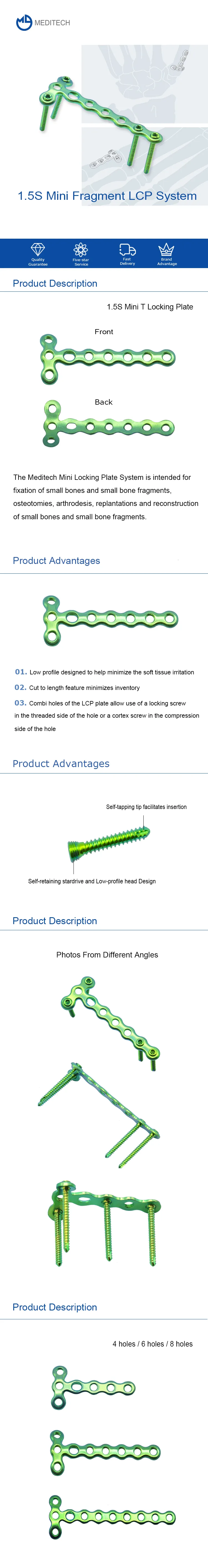 1,5 мм миникондиларна заключваща пластина, произведена от CZMEDITECH за лечение на фрактури, може да се използва за възстановяване на травми и реконструкция на фрактури на пръсти и метатарзални кости.