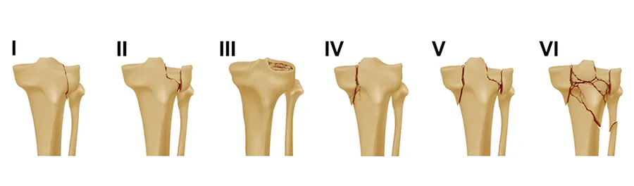 di tibial platכ na imכtant wet-bεn strכkchכ fכ di kכn joyn. Bɔku tɛm, dɛn kin mek fraktrɔs bikɔs ɔf di bad bad tin dɛn we kin apin to dɛn (ɛgz., motoka aksidɛnt, fɔdɔm) ɔ injuri we nɔ gɛt bɔku ɛnaji (osteoporosis na di ol pipul dɛn), ɛn bɔku tɛm dɛn kin jɔyn dɛn wit meniskɔs ɛn ligamɛnt injuri (we kin gɛt 50 pasɛnt insidɛns rɛt). Di kɔr gol dɛm fɔ tritmɛnt na fɔ mek di jɔyn surface flatness kam bak, fɔ mek di limb stebul, ɛn fɔ avɔyd sɛkɔndari traumatik atraytis.