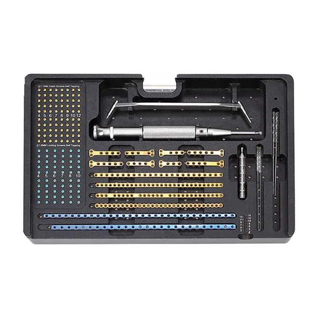 Ko nga papa i roto i te Pet 1.6mm Locking Plate Instrument Kit he mea hanga mai i te koranu titanium, he mea he mea koiora, he kaha, he maamaa.