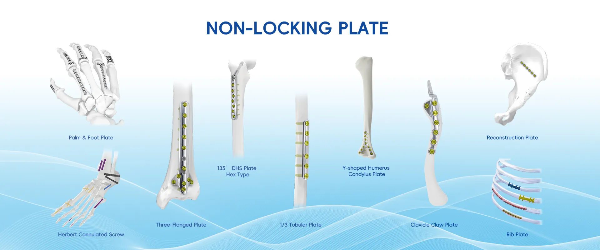 We mainly produce spinal implants, intramedullary nail, trauma non-locking plate and locking plates, cranial maxillofacial plate, medical power tool, external fixators, hip and knee joint, sports medicine,laparoscopic products,orthopedic instruments and veterinary orthopedic .
