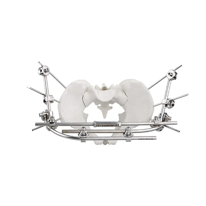 Pambuyo pa opaleshoni, dokotala akhoza kusintha bwino malo, kugwirizanitsa, ndi kutalika kwa zidutswa za fracture pogwiritsa ntchito ndodo zogwirizanitsa ndi ziwalo za chimango chakunja kuti akwaniritse kuchepetsa koyenera.