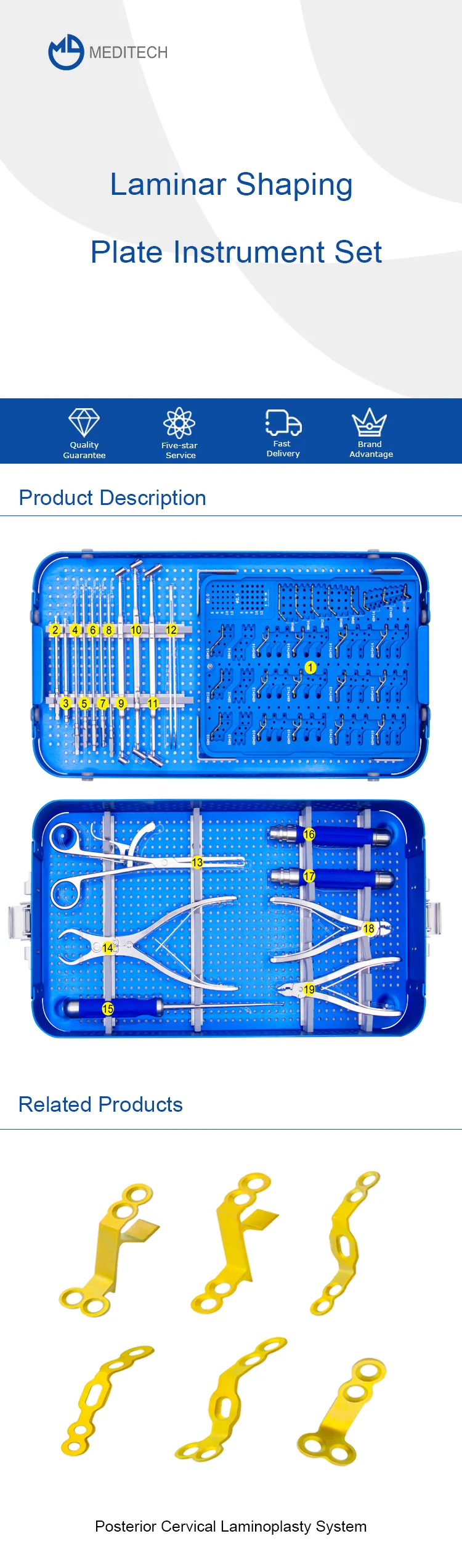 Um conjunto de instrumentos de placa de modelagem laminar é uma coleção de ferramentas cirúrgicas e implantes projetados para uso em cirurgia da coluna vertebral. Esses instrumentos são usados para ajudar a estabilizar a coluna e promover a cura após certos tipos de lesões ou condições na coluna.